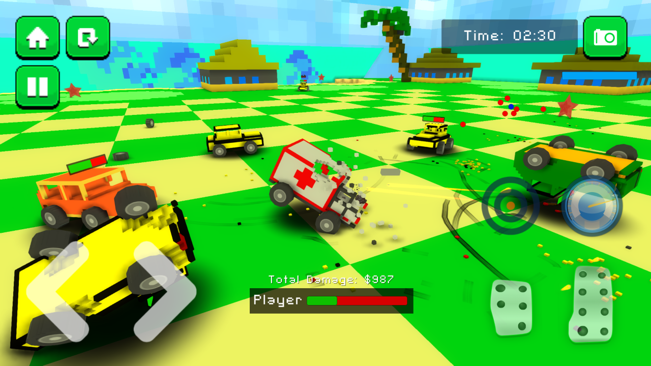 Some of the awesome features of this car game: ★ Explore various derby demolition modes, including tank and war mode ★ Intense high speed car crashing fun ★ Real-time voxel destruction and damage effects + crash physics engine ★ Choose between many cool blocky cars and vehicle upgrades ★ Incredible visuals and great performance on a wide range of devices ★ Blocky editor - modify existing vehicle or make your own from scratch Have fun crashing and destroying your oppponents. However, in this simulator limiting car damage is key to becoming victorious and how you attack other vehicles makes a big difference. Always try to smash rivals when you have enough health or they are already damaged. A reckless head-on collisions with powerful vehicles should be avoided to prevent your blocky parts to explode or other extreme damage to occur. To boost the damage you inflict on an rival you can drive & crash faster by using the nitro boost or charge boost. The game allows you to choose from various vehicles - around 40 of them - and play in 10+ colorful derby arenas. Be sure to buy upgrades wisely as the various type of modes require different cars. Use armor upgrades to strengthen your endurance; or engine upgrades to boost your speed, push and pulling power. Good results let you earn more money (cash) during derbies! Car physics is realistic enough to ensure that driving feel great while voxel based explosions and great looking graphics make you play more. Enjoy cool demolition and good luck!
