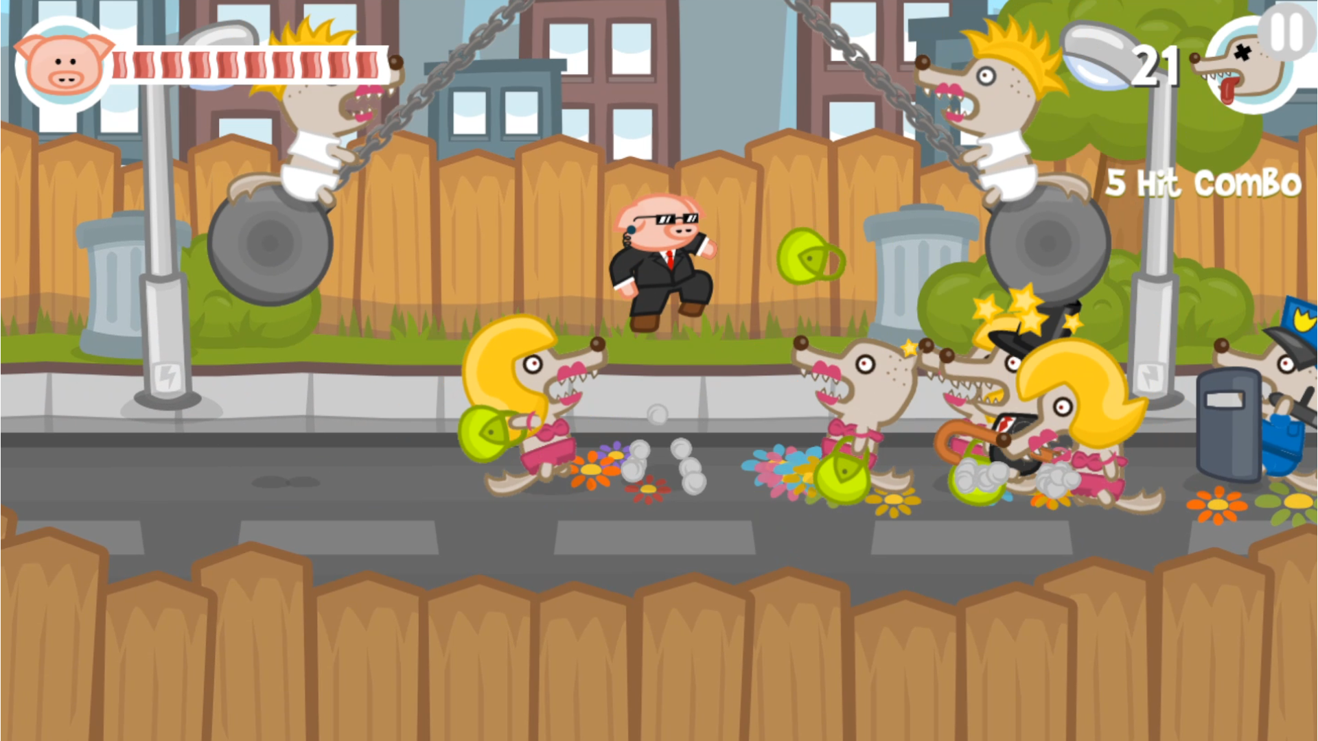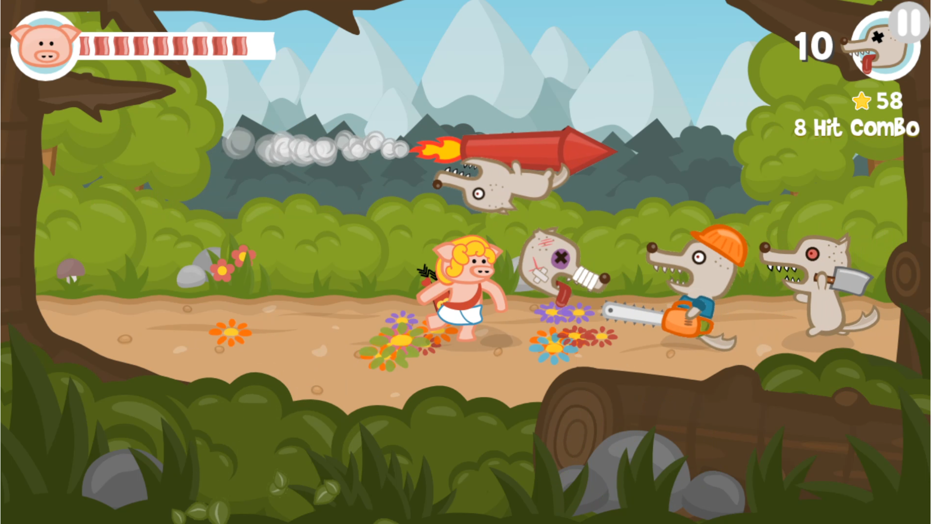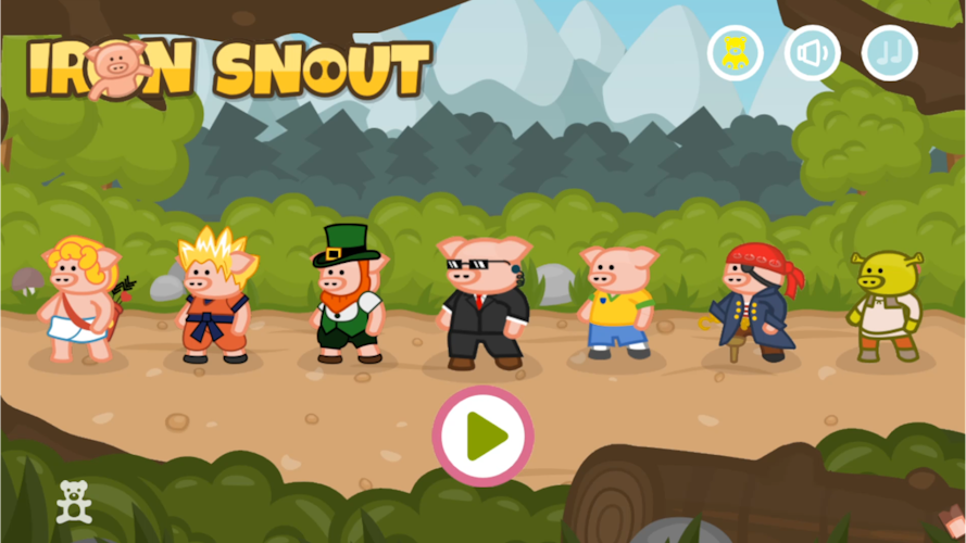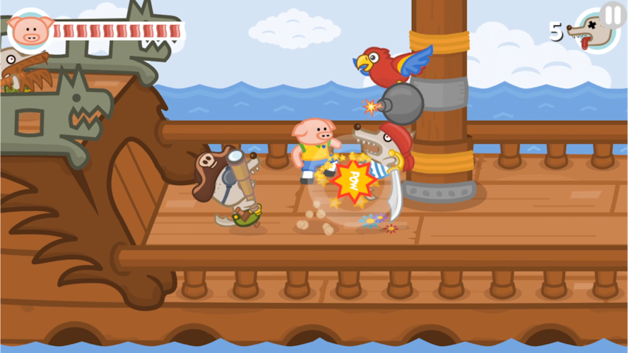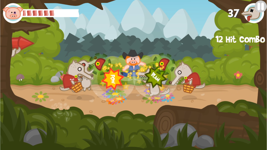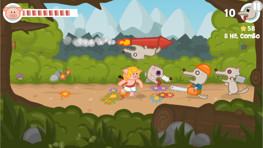 Iron Snout is a fun brawling game, where you control a ninja piglet to fight off army of wolves! Swipe and tap to punch, kick or slam your enemies, steal and use their weapons or knock them out of the arena in an attempt to survive as long as possible in this endless fight between one little piggy and army of wolves! Features: 🐷 mortal combat between hero pig and angry wolves 🐷 fast and responsive touch controls 🐷 awesome ninja fighter pig 🐷 crazy combos and action movie-like combat flow 🐷 two cool arenas with different enemy sets 🐷 fun achievements and stats Iron Snout is a 2D fighting game with fun action-packed mortal combat, to challenge your reflexes and skills. Turn your finger tap fury into piggie kung fu moves to beat hordes of wolves! Every piggy fight game session will be different and provide you multiple fun ways to beat your enemies - think and react fast to not get beater by horde of foes! Use a pork ninja fighting style to dominate this 2D fighting game! Swipe fast to make our bacon pig fight hero jump over or dodge under the rocket wolves or swinging wrecking balls! Use one finger punch attacks to knock your enemies back. Like in other fun beat em up fight games, this little bacon ninja fighter can kung fu punch and kick enemy projectiles back. Beat a sword fighting wolf and it will drop its weapon, which your tiny piggy hero then can catch and use in the battle. You must defend hero piggy with your pork chop moves from the fury of bacon hungry wolves, so learn their attack patterns and react with your best beat em up fight game moves. In forest arena you’ll battle granny wolf fighters, pogo wolves and chainsaw wielding foes. In street fighting arena fight angry skateboarding wolves, police squad and wolves swinging on a wrecking ball or throwing balls at your kung fu master pig! Get your ninja fight skills ready to battle hordes of angry wolves in this beat em up brawl game!