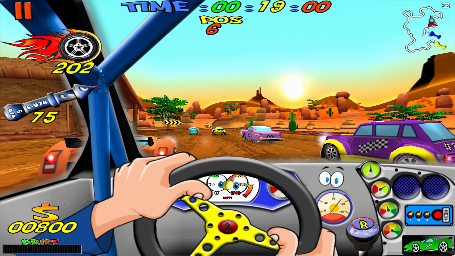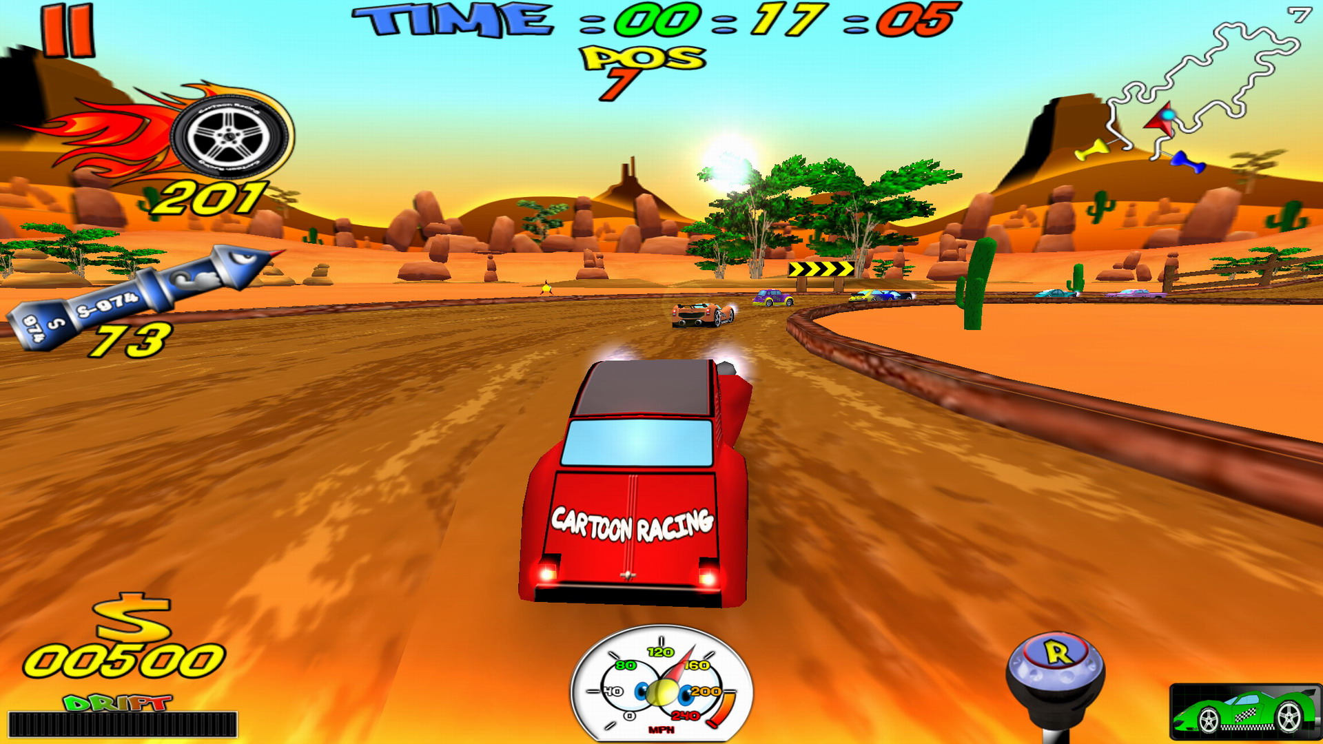 With "Cartoon Racing", drive your SuperCar in a really Fun Cartoon environment! Take the control of your Cartoon Car, on no less than 20 different tracks! Improve your experience on each track and increases your XP! Increase your Firepower and Boost your engine in the "Shop", available on the main menu! Fasten your seatbelt and take the control of your Powerful Cartoon Car! Avoid the Tornadoes! They make you lose control! Get max Rockets and aim well! Fabulous sensations await you! Now, it's up to you! ••• Game Features ••• • 8 different Cartoon Cars! • Total control of your Cartoon Car • Full 3D Real Time Rendering • 20 different tracks • High graphic Quality! • Really nice Cartoon environment! • Customize your Cartoon Car • Discovery Mode • Nitro and Rocket Bonus • Select the difficulty level • Sets the Accelerometer sensibility • Choose your Camera view